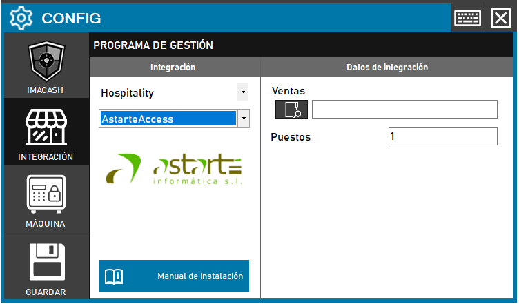 - CONFIG → INTEGRACIÓN en ImaCash.