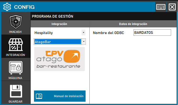 - Accede al menú CONFIG → INTEGRACIÓN en la interfaz de ImaCash.