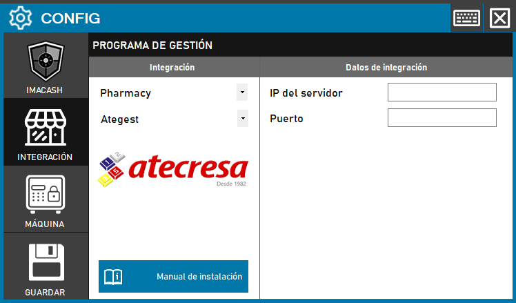 La integración de Ategest con ImaCash funciona mediante socket, por lo que requiere una configuración de conexión de red simple.