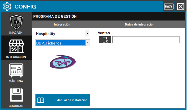 - Ve a CONFIG → INTEGRACIÓN en tu sistema ImaCash