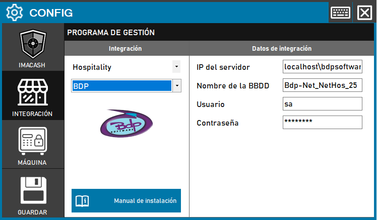- IP del servidor: Introduce la dirección IP del servidor donde está instalado BDP (ejemplo: localhost\bdpsoftware)