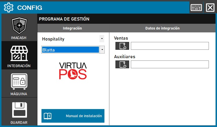 Para integrar Blatta con ImaCash, sigue estos pasos en el programa: