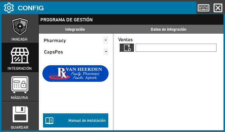 - Ve a CONFIG > INTEGRACIÓN en tu sistema ImaCash