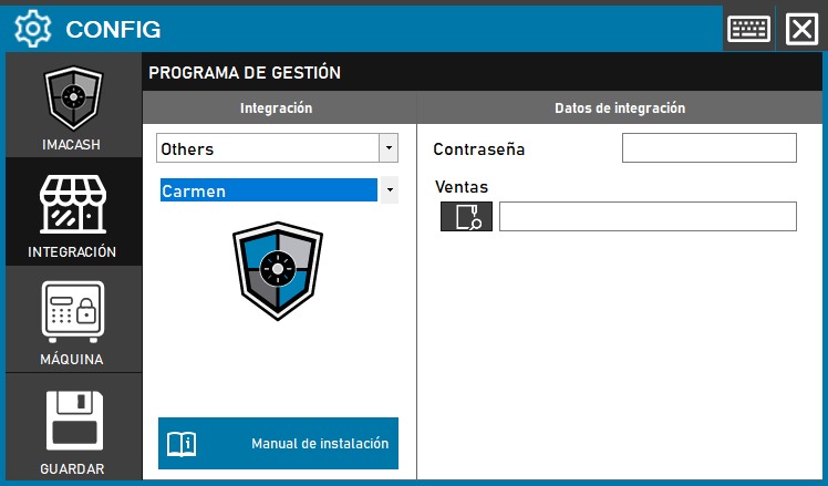 Para integrar el software Carmen con ImaCash y conectar de forma fácil y rápida las máquinas de control de efectivo con el POS, el técnico deberá configurar una contraseña y la ruta de ventas.