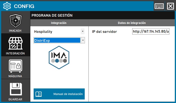 - Ve a CONFIG → INTEGRACIÓN en tu sistema ImaCash.