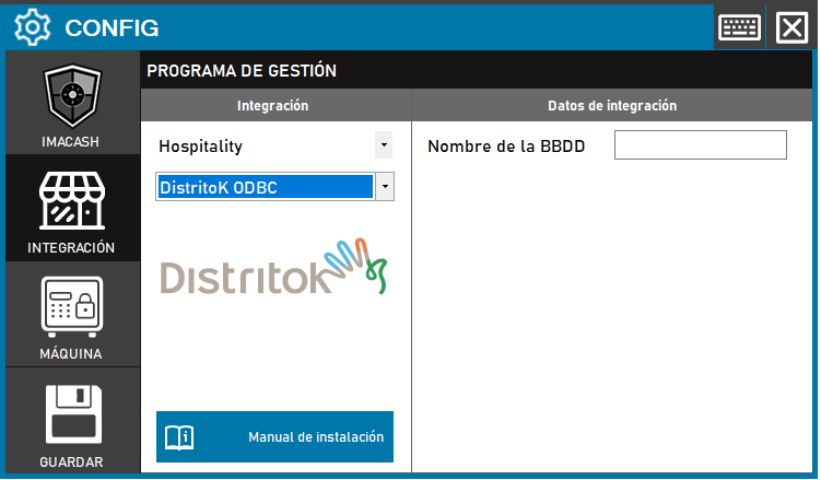 - Nombre de la BBDD: Introduce el nombre del ODBC configurado para Distrito K