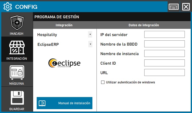 - Ve a CONFIG → INTEGRACIÓN en tu sistema ImaCash