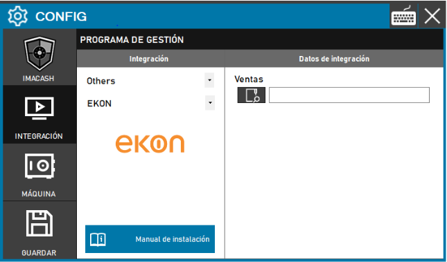 Para integrar el software Ekon con ImaCash, el técnico deberá especificar la ruta completa de la carpeta donde el software de gestión Ekon almacena los archivos de ventas.