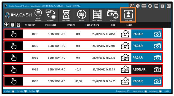 • Abrir Tapa: Abre la tapa de seguridad de la máquina de control de efectivo (Solo SafePay).