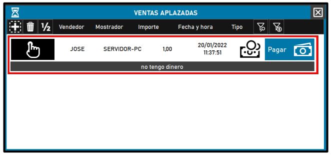 Aquí irán todas aquellas ventas, que en la ventana de pagado se pulsa el botón de aplazar.