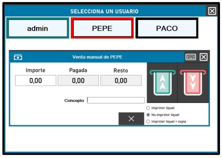 Al pulsar “Venta Manual aparecerá la siguiente ventana de selección de usuario: