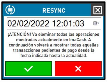 • Resync: Por defecto, ImaCash muestra las ventas de los últimos 7 días, con “Resync podemos decirle desde cuando queremos que nos muestre.