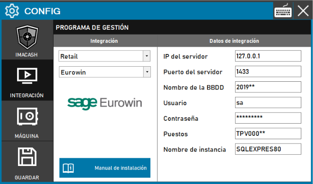 - CONFIG → INTEGRACIÓN en ImaCash.