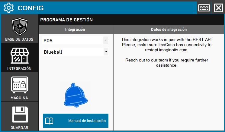 - Entre en la sección INTEGRACIÓN desde el panel lateral de ImaCash.