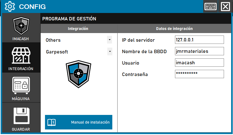 - Selecciona CONFIG > INTEGRACIÓN en ImaCash.