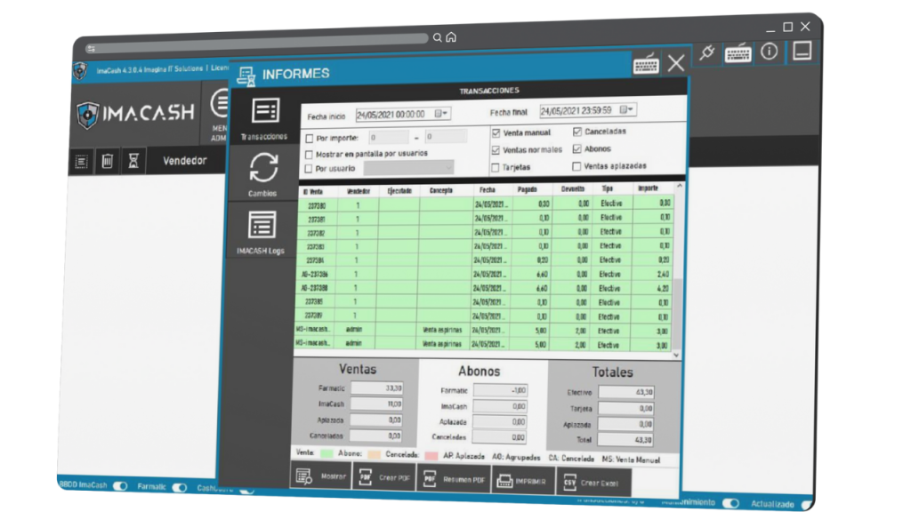 Integración con ImaCash: El software centraliza los datos del equipo para ofrecer una visión clara de la tesorería del negocio en tiempo real.