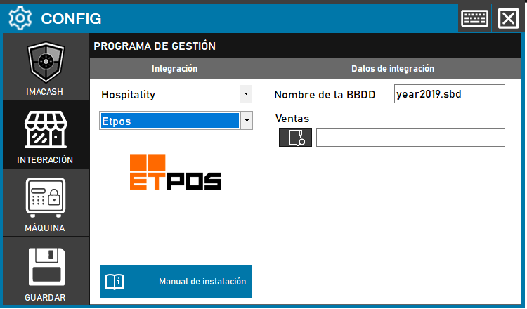 1. CONFIG → INTEGRACIÓN en ImaCash.