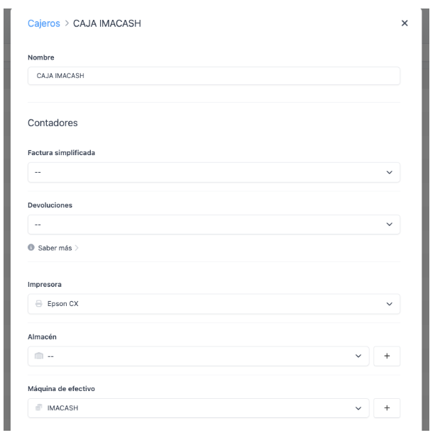 3. En Máquina de efectivo, selecciona la máquina de efectivo creada.