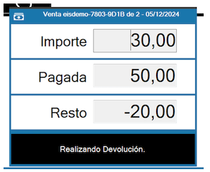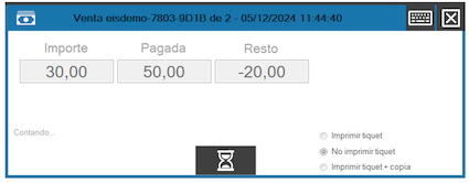Una vez hemos pulsado el botón de cobrar en efectivo aparece una pantalla con la siguiente información: