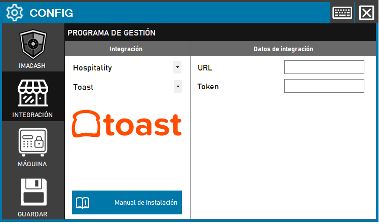 1. Accede al menú CONFIG → INTEGRACIÓN en la interfaz de ImaCash.