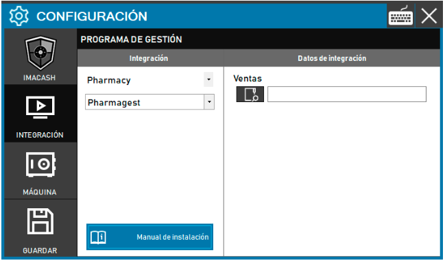 Para integrar el Software Pharmaland con ImaCash, el técnico deberá especificar la ruta del directorio local o de red donde el programa de gestión guarda los registros de sus ventas.