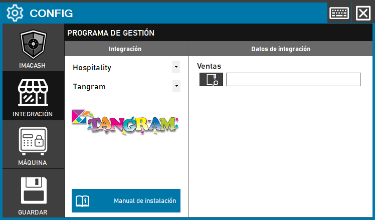 - Accede al menú CONFIG > INTEGRACIÓN en la interfaz de ImaCash.