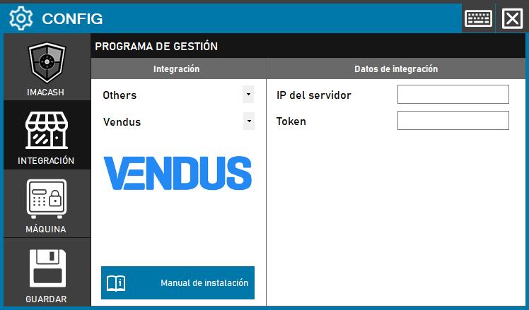 - Accede al menú CONFIG → INTEGRACIÓN en la interfaz de ImaCash.