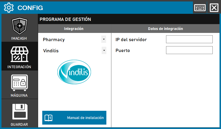 Para integrar el Software Vindilis con ImaCash, el técnico debe configurar los parámetros de red para establecer la comunicación entre el sistema de gestión farmacéutica y la máquina.